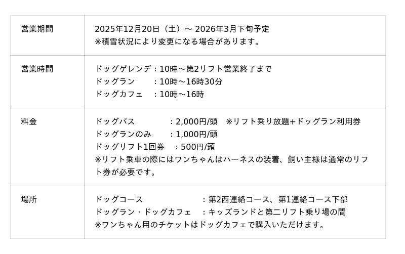 株式会社オープンハウスグループ(本社 東京都千代田区、代表取締役社長 福岡 良介、以下「当社」)のグループ会社である株式会社みなかみ宝台樹リゾート(本社:群馬県利根郡みなかみ町、代表取締役 横瀬寛隆)が運営する「群馬みなかみほうだいぎスキー場」(以下「ほうだいぎスキー場」)は、2025年12月20日(土)より、愛犬と一緒に滑走を楽しめる常設エリア「ドッグフィールド」を本格始動いたしました。昨シーズンのイベントで大好評を博した「ワンちゃんと滑れるスキー場」が今シーズンより常設でお楽しみいただけます。スキー場でのドッグコース常設は全国的にも珍しく群馬県みなかみ町では初めて※であり、愛犬家にとっての新たな冬のレジャー体験を提供いたします。(※当社調べ)