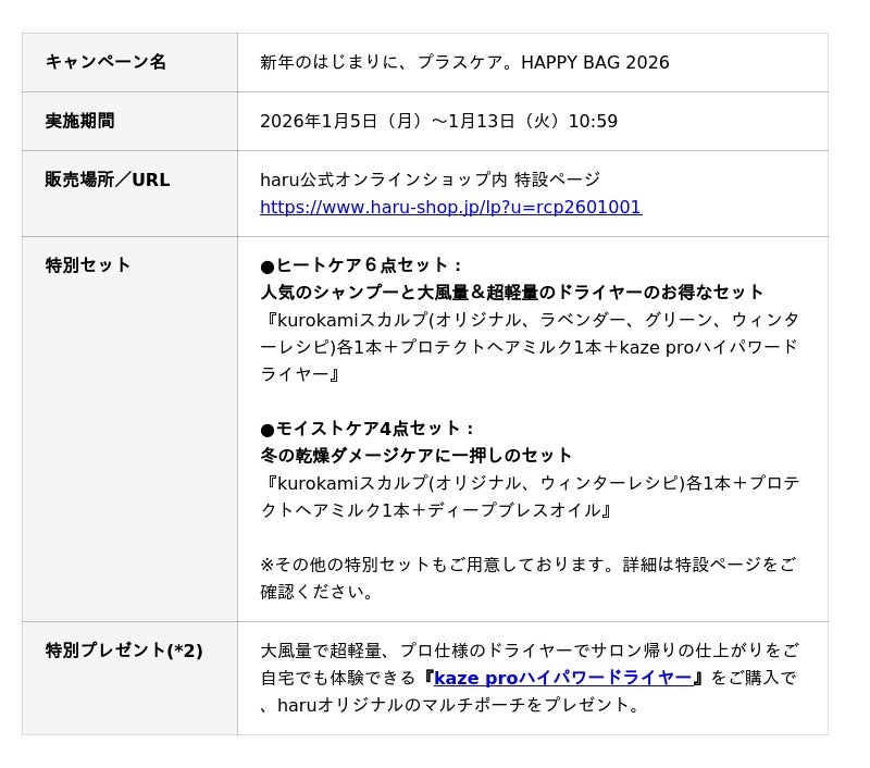 【新春限定】新年のはじまりに、プラスケアを。ヘッドビューティブランド『haru』の《HAPPY BAG 2026》特別セットを期間限定でお届け