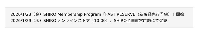 公式Instagram:https://www.instagram.com/shiro_japan?igsh=NTc4MTIwNjQ2YQ==