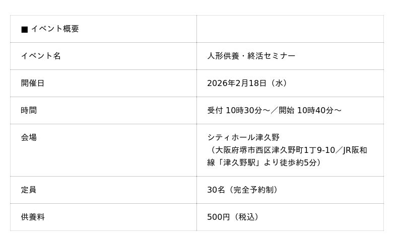 ※供養希望の方は当日人形をご持参ください