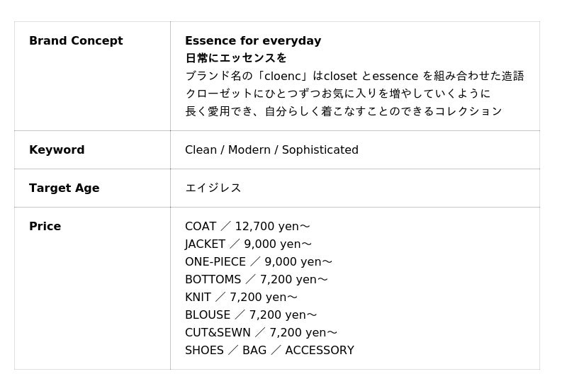 【cloenc:Brand Outline】