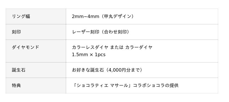 - 圧倒的なカスタマイズ性 ダイヤモンドだけでなく、誕生石も含まれた豪華な仕様です。デザインや宝石の種類は当日お選びいただけるため、相談しながら楽しく決めていただけます。