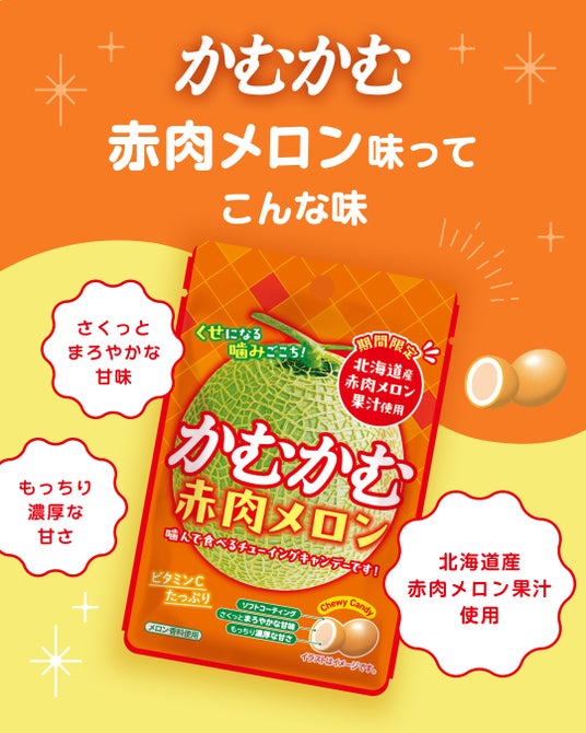 噛んで溢れだす「赤肉メロン」の濃厚感!!パッケージもリニューアルして期間限定で再発売!
