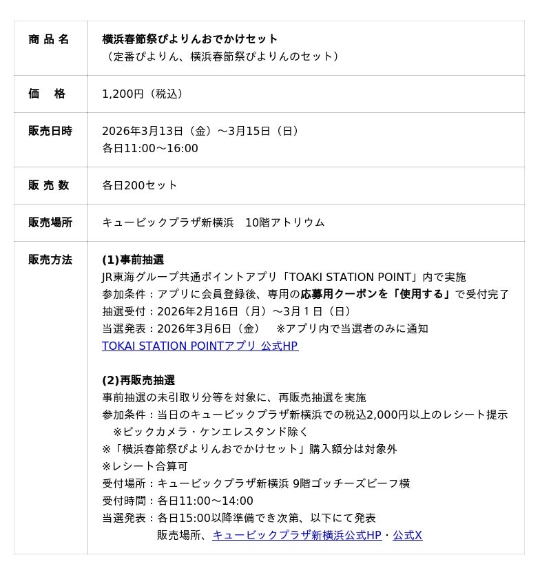 詳しい応募・販売・引渡方法や、ぴよりん関連商品のラインナップの詳細はキュービックプラザ新横浜公式HPをご確認ください。