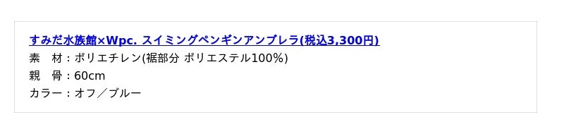 株式会社ワールドパーティー(本社:大阪市住吉区、代表取締役社長:冨田智夫)が展開する傘ブランド「Wpc.(ダブリュピーシー)」は、ペンギンの個性や関係性をまとめた”すみだペンギン相関図”が話題のすみだ水族館とコラボレーションした、ビニール傘1種、折りたたみ日傘2種を2026年2月2日(月)より、Wpc.公式オンラインショップ、Wpc.直営店舗他、全国の取扱店舗にて販売開始いたしました。