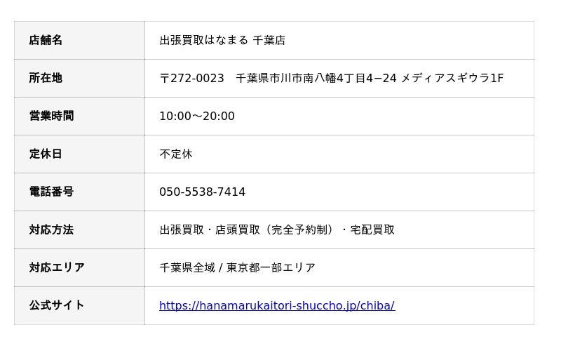 出張買取はなまる千葉店の店舗詳細