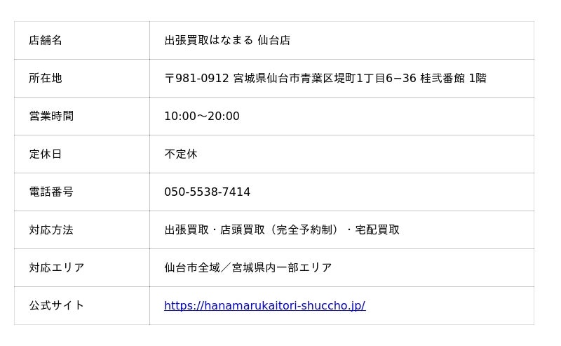 出張買取はなまるの店舗情報