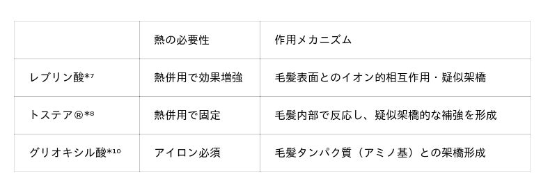 酸熱ケア成分+トステア(R)で毛髪の『形状補整』