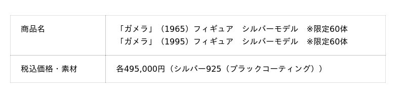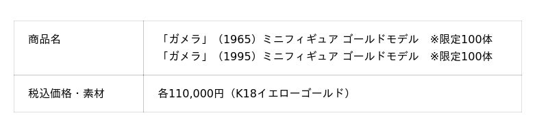 『ガメラ 大怪獣空中決戦』(1995年)の公開から30年を記念して、ゴールド製フィギュアが登場。