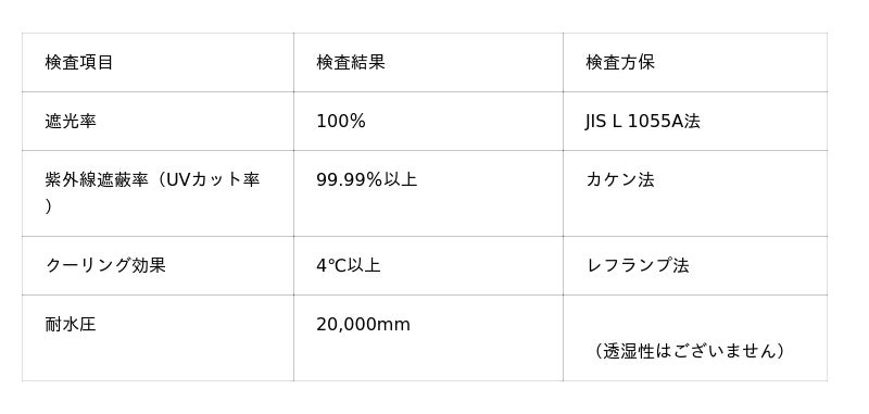 今期の晴雨兼用傘は、昨年に引き続き東レの”サマーシールド”を採用。遮光率100%、UVカット率99.99%、クーリング効果や耐水性などすべての項目で高い効果を発揮します。