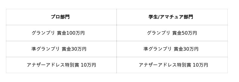 なお、プロ部門と学生/アマチュア部門の2部門で審査を行い、各部門の受賞者には賞金が贈られます。