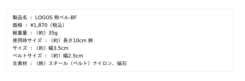 電車移動などで役立つ消音機能付き!キャンプや登山にあると安心な熊ベル「LOGOS 熊ベル-BF」 新発売!