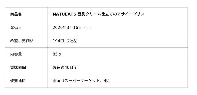 トーラク株式会社(本社:兵庫県神戸市東灘区向洋町西5丁目5番、代表取締役社長:毛利 功一郎)は、「豆乳クリーム仕立てのアサイープリン」と「アーモンドミルク仕立てのクリーミープリン」を2026年3月16日(月)から全国で発売いたします。