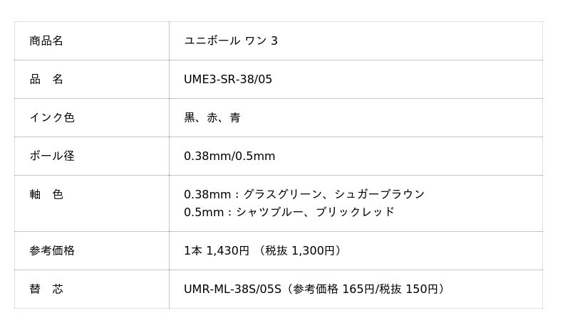 三菱鉛筆株式会社(本社:東京都品川区 社長:数原滋彦)は、黒は一層濃く、カラーはより鮮やかに発色するゲルインクボールペン『uni-ball one(ユニボール ワン)』より、かわいらしいフォルムでマルチに使える3色ボールペンの『ユニボール ワン 3』(参考価格1,430円:税抜1,300円/インク色:黒、赤、青/ボール径:0.38mm、0.5mm/軸色:全4色)、『ユニボール ワン 3』(ギフトver.)(参考価格1,980円:税抜1,800円/インク色:黒、赤、青/ボール径:0.38mm、0.5mm/軸色:全2色)を2026年3月18日(水)に発売いたします。