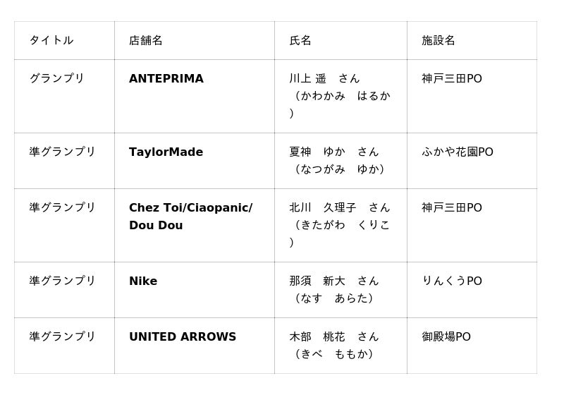 三菱地所・サイモン株式会社(本社:東京都千代田区、代表取締役社長:山岸正紀)では、2026年2月25日(水)に「第14回 プレミアム・アウトレット 接客ロールプレイングコンテスト 全国大会」を開催いたしました。審査の結果、神戸三田プレミアム・アウトレット「ANTEPRIMA(アンテプリマ)」の川上 遥さんが、グランプリを受賞しました。