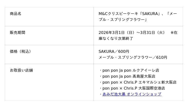 いよいよ春本番、お花見シーズンの到来です。創業220年の歴史を誇る「あみだ池大黒」より 、お花のカタチのラングドシャ「大阪花ラング」や桜フレーバーの春限定商品など、満開の桜の下での乾杯や、大切な方への春の手土産に最適な春スイーツをご紹介いたします。