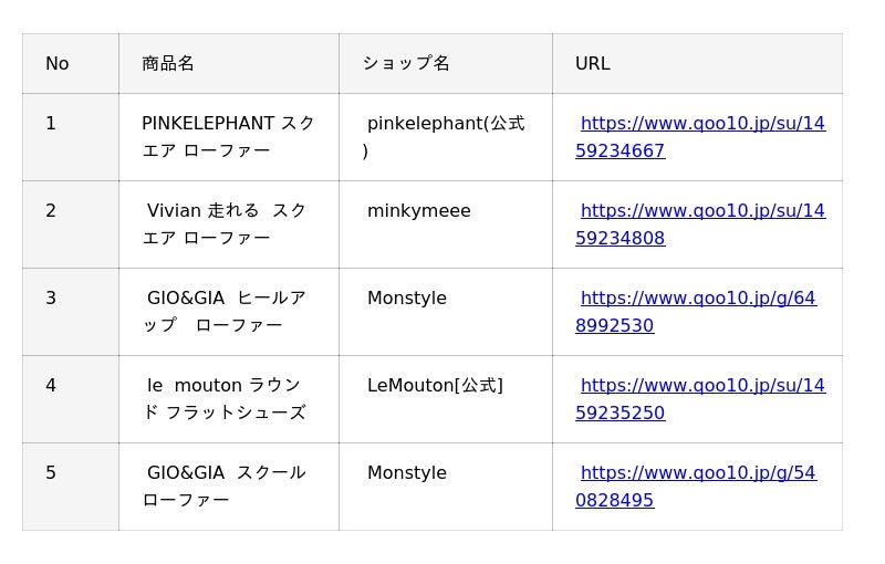 Qoo10「ローファー・フラット」人気ランキング