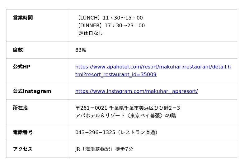 鉄板焼「THE 七海」公式HP:https://www.apahotel.com/resort/makuhari/restaurant/detail.html?resort_restaurant_id=35009