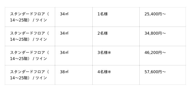【客室タイプ・料金】 1泊1室料金(朝食付、税金・サービス料含む、宿泊税別)