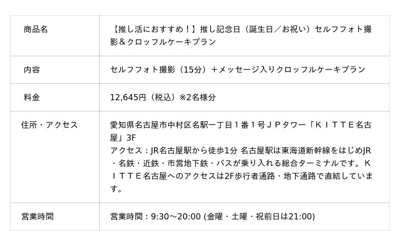 バースデーや記念日のお祝いはもちろん、“推し活”などの特別なシーンにもご利用いただける新しいフォトカフェプランです。