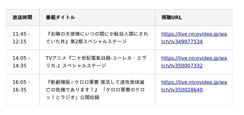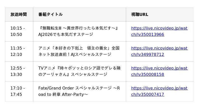 なお、生中継プログラムは随時追加予定です。最新情報は「Nアニメ」公式サイトおよび公式Xでお知らせします。