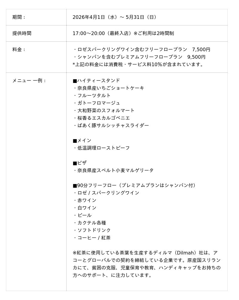 奈良の食材と桜の香りを楽しむ、春だけの特別なイブニングハイティー