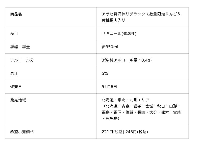 ■『アサヒ贅沢搾りデラックス数量限定りんご&黄桃果肉入り』5月26日エリア限定発売