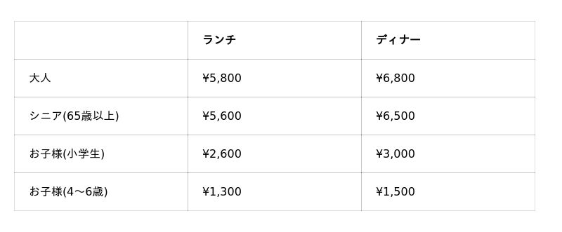 ※料金には消費税及びサービス料が含まれております。