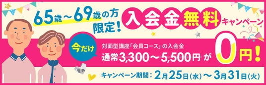 現在、65歳以上の方は入会金5,500円が無料!お得なこの機会をお見逃しなく。